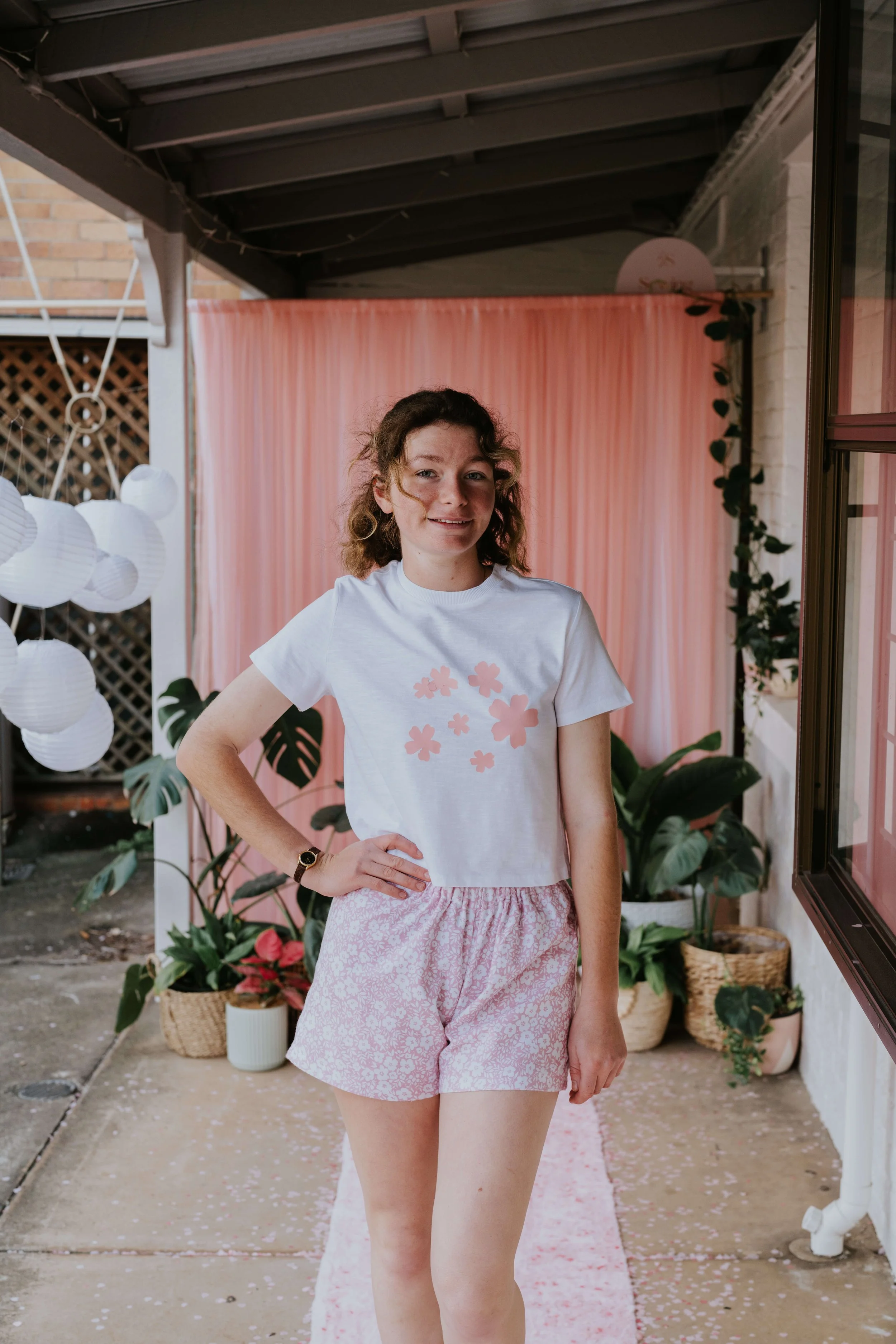 Comfy cotton shorts (or pants, if you prefer!) that you can wear from street style to bedtime. This project introduces you to working with elastic waistbands and garment construction. There’s also the option to customise a t-shirt to create a cute matching PJ set.